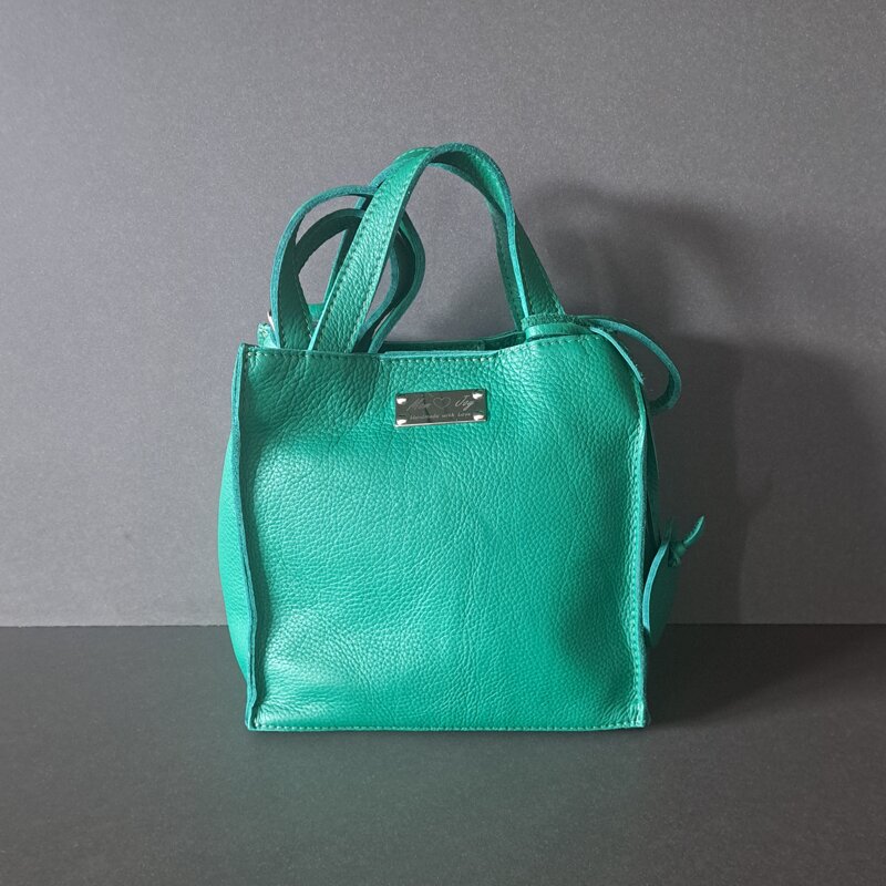 Realizzata in vera pelle di colore verde bandiera.