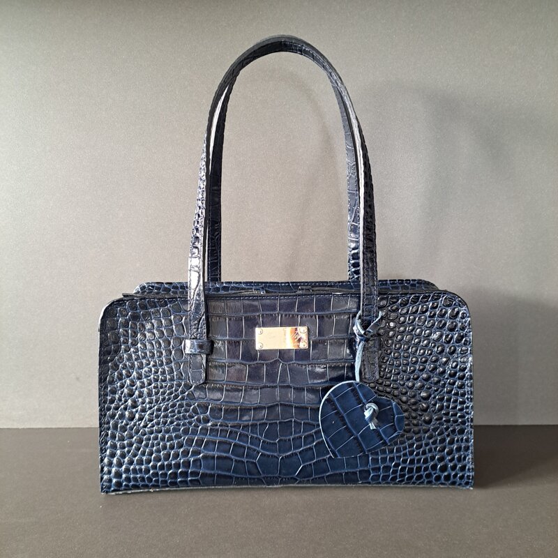 Materiale: vera pelle stampa cocco color blu notte.