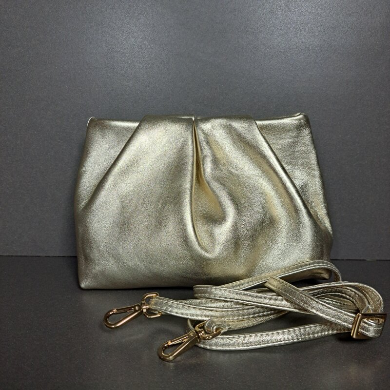 Clutch rivisitata, in morbidissima pelle con originale motivo a pieghe.