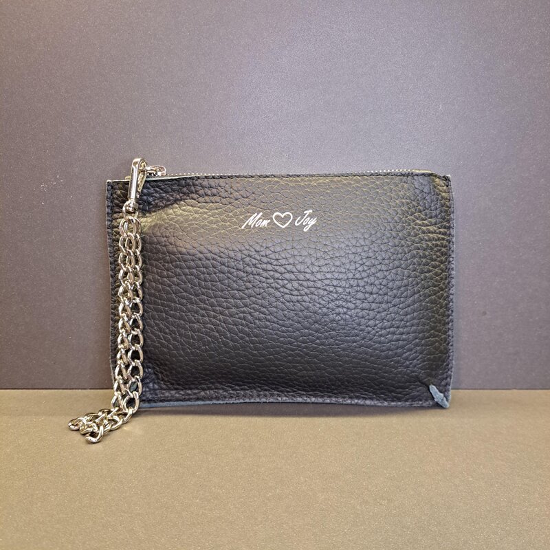 Mini Pochette piatta in vera pelle bottalata superior con catenella da polso in metallo silver. Ideale per avere le mani sempre libere.