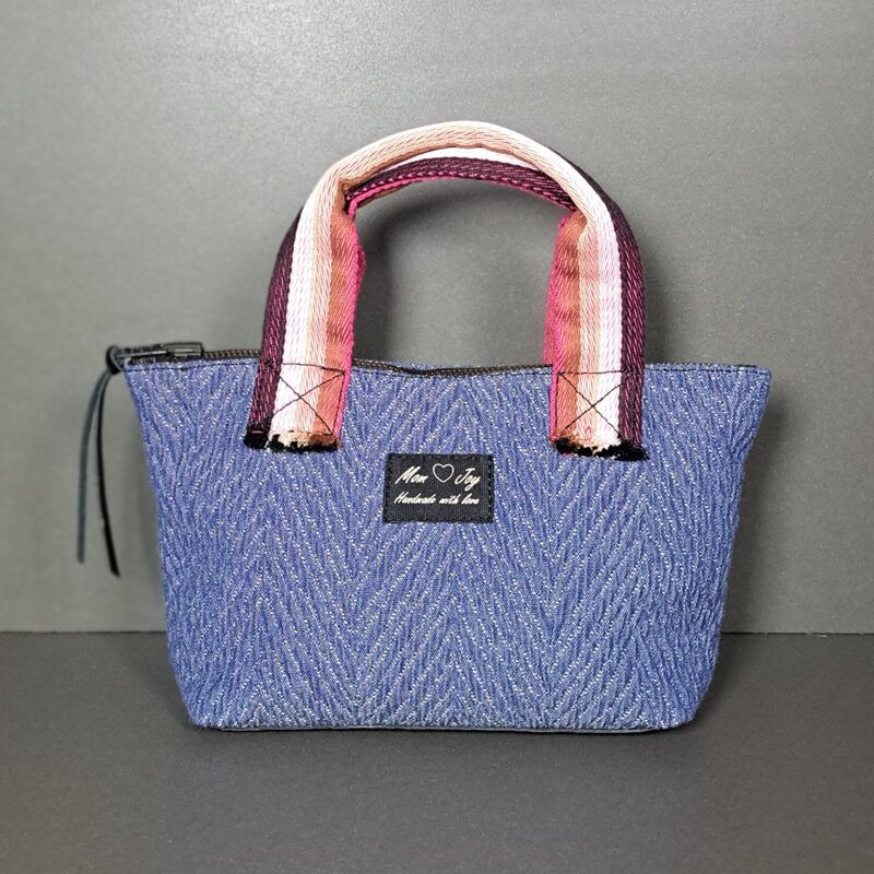 Mini Bag in tessuto di Cotone goffrato con fondo in vera pelle, realizzata a mano, con manici in PE/Cotone resistente all'usura nelle tonalità del rosa/viola.