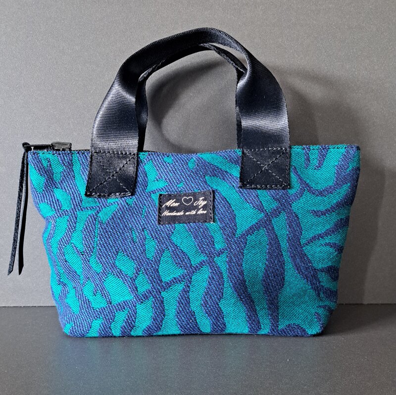 Mini Bag in tessuto PE/Cotone con fondo in vera pelle realizzata a mano, con manici in PE resistente all'usura color Nero.